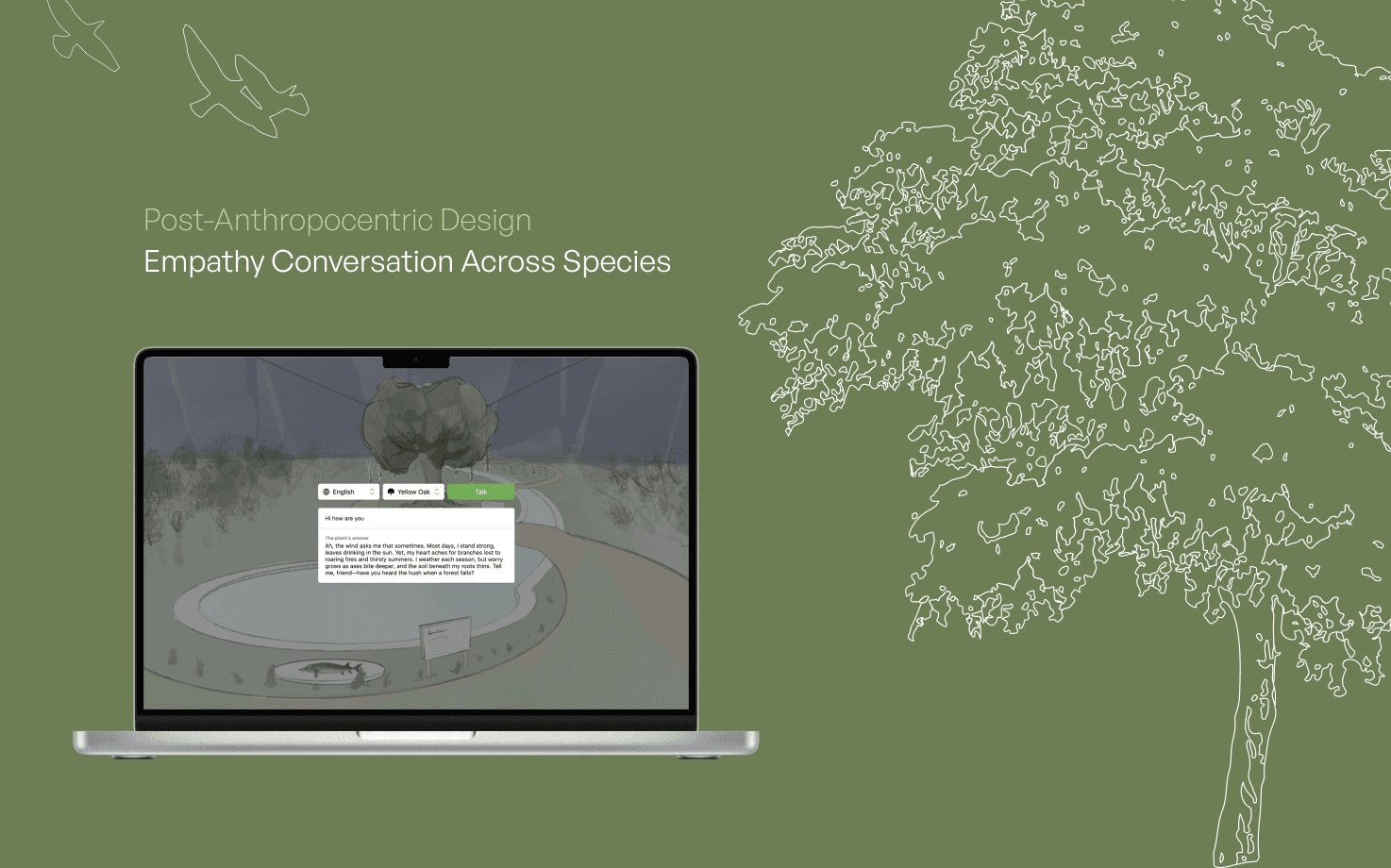 This project combines environmental data with LLM technology, creating an interactive installation/web where visitors engage in conversations with endangered species, transforming abstract ecological issues into emotionally resonant experiences.
