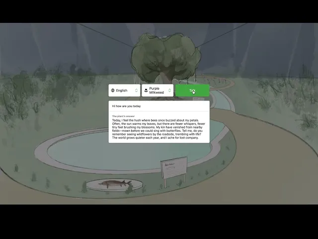 This project combines environmental data with LLM technology, creating an interactive installation/web where visitors engage in conversations with endangered species, transforming abstract ecological issues into emotionally resonant experiences.