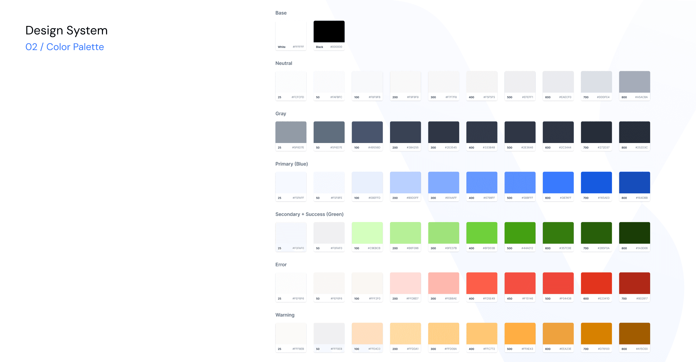 We expanded the existing palette into a structured system with defined roles. The expanded color scale allows flexibility while maintaining cohesion, supporting both marketing materials and product UI.