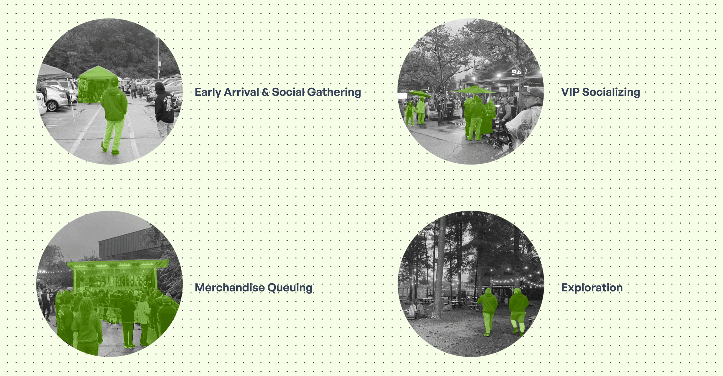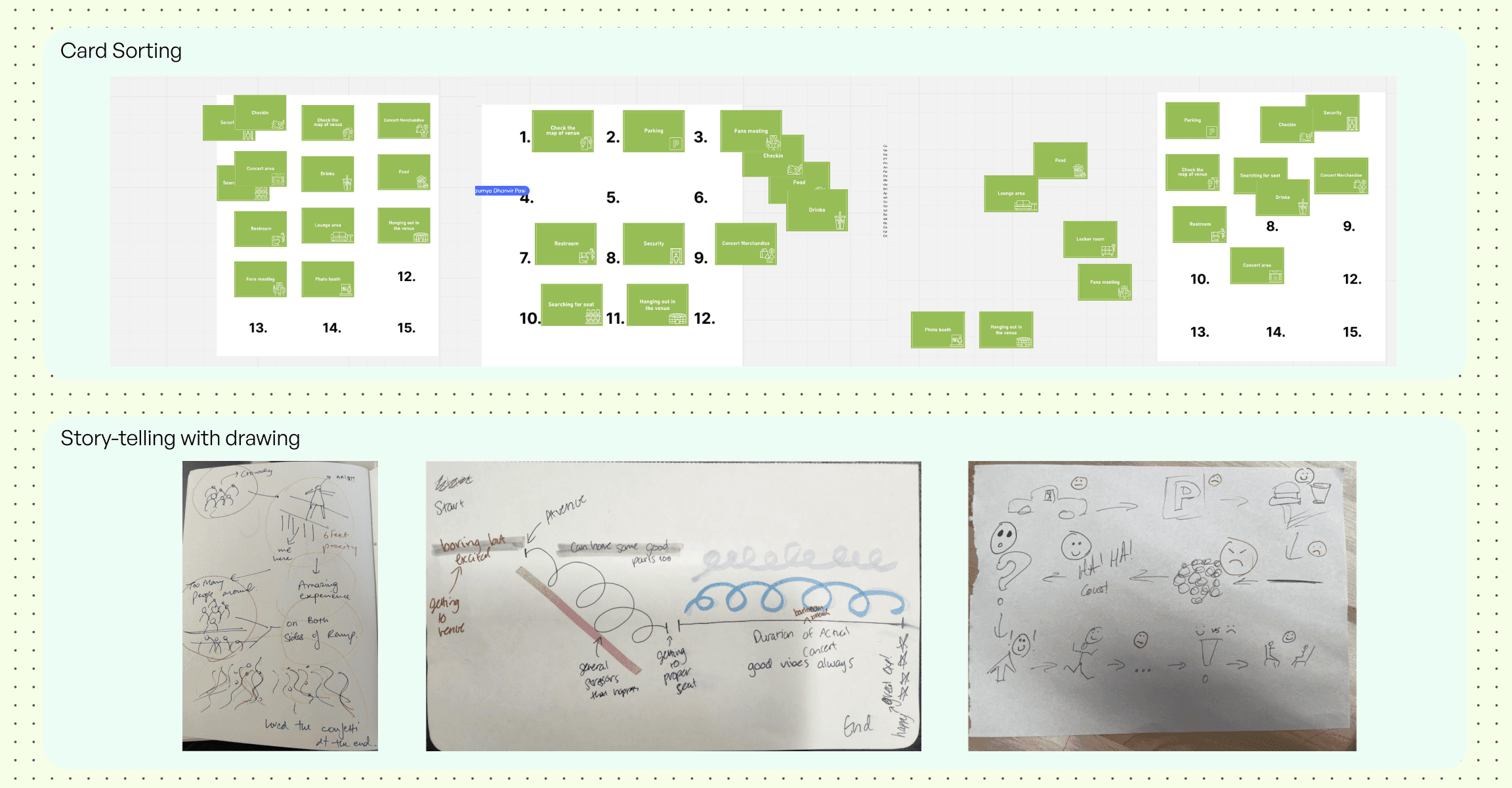 Active Engagement During WaitingWaiting is rarely passive. Concertgoers naturally seek ways to enrich this time by engaging in activities such as socializing, exploring the venue, or purchasing merchandise. This reveals an opportunity to design waiting as an interactive and meaningful experience rather than a gap in the journey.