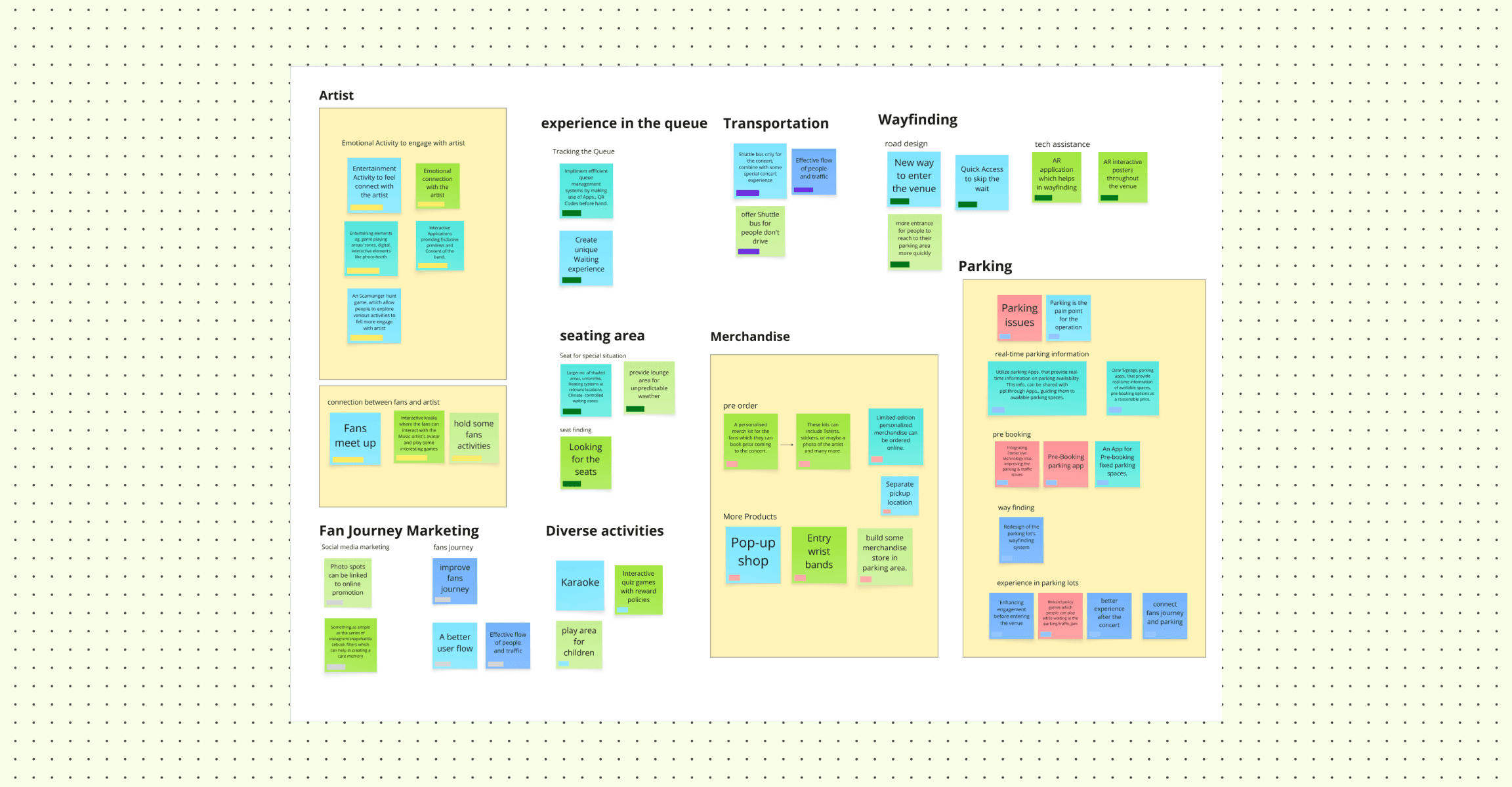 Based on our research findings, our team conducted an affinity mapping session to synthesize insights and identify key themes. We clustered observations, interview data, and user quotes to uncover patterns in audience behaviors, emotions, and pain points during the waiting experience.